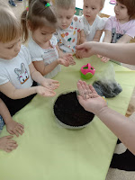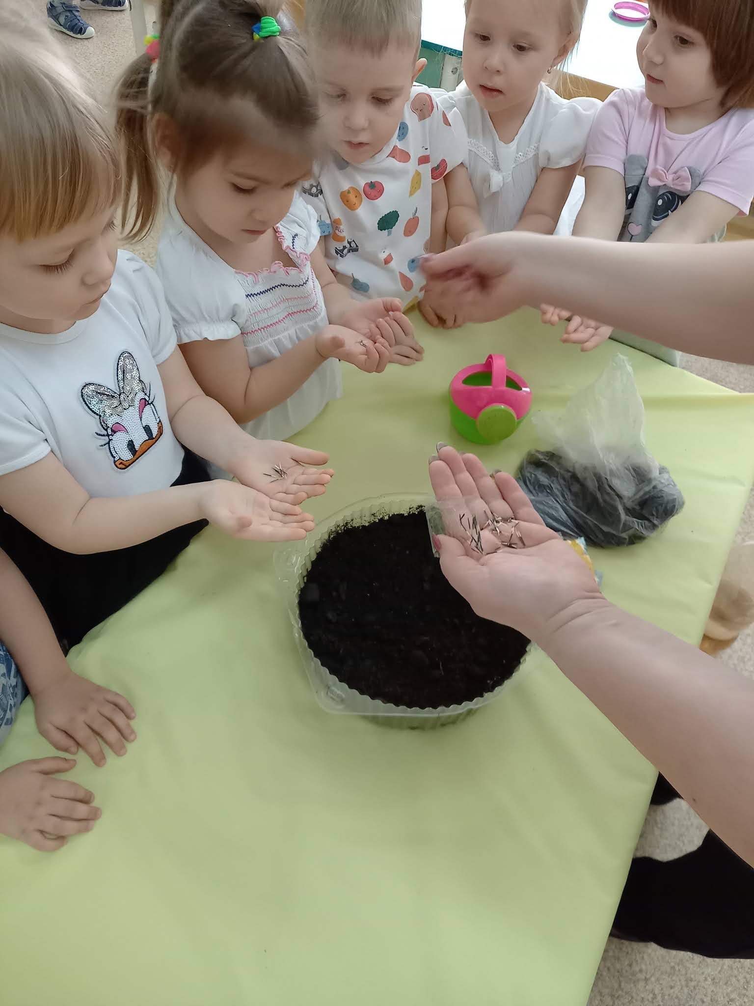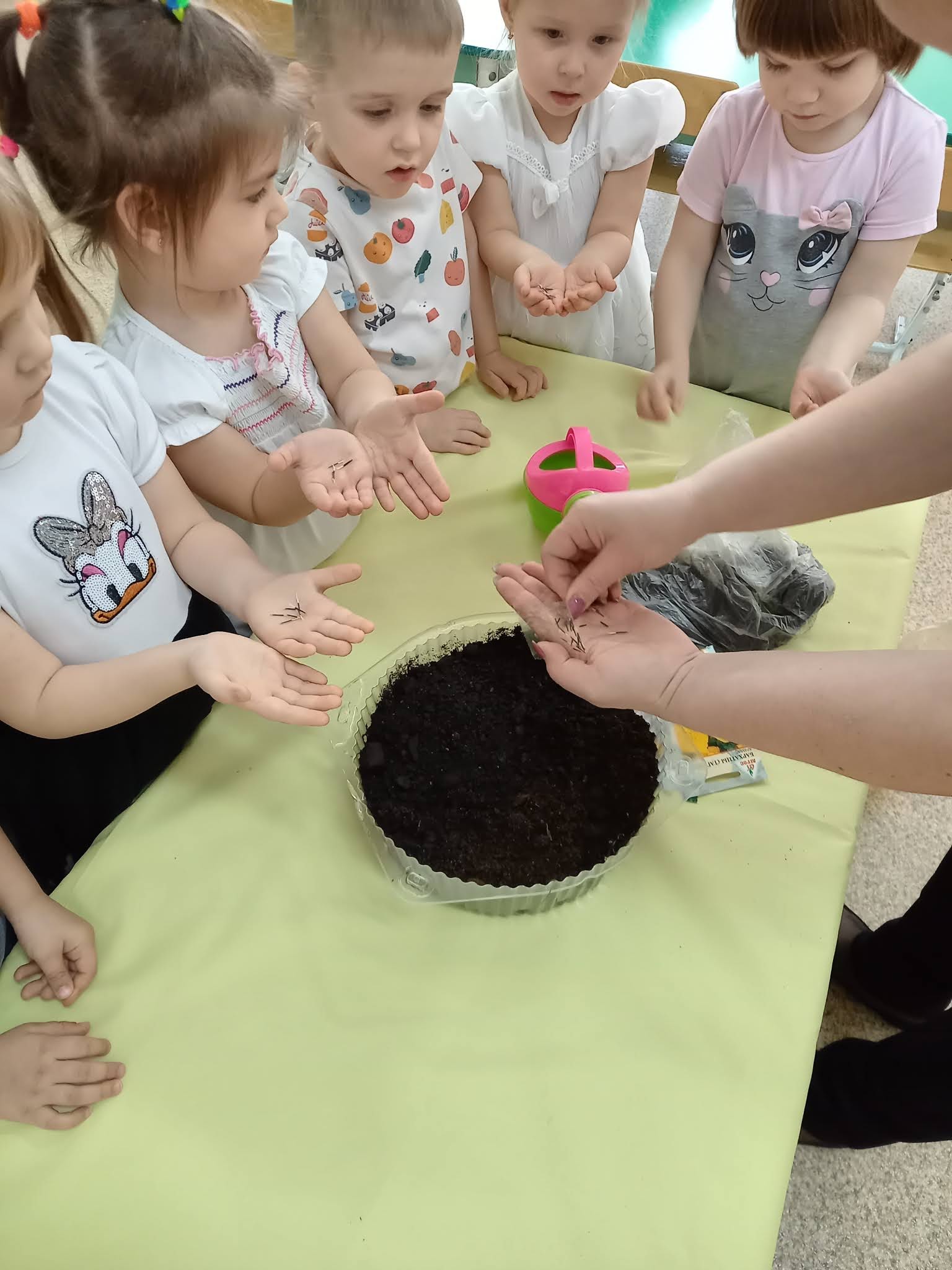 В нашей группе мы с детьми посеяли бархатцы на рассаду для украшения участка. Перед посадкой рассмотрели семена, отметили, что похожи они на перышки и парашютики. Дети узнали, что для прорастания семян нужно семенам тепло, свет и вода.