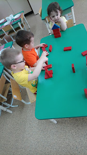 В процессе деятельности с мелким строителем расширяется словарный запас ребенка, он усваивает такие понятия как длина, ширина, высота и направление в пространстве: вверху, внизу, посередине, сбоку.